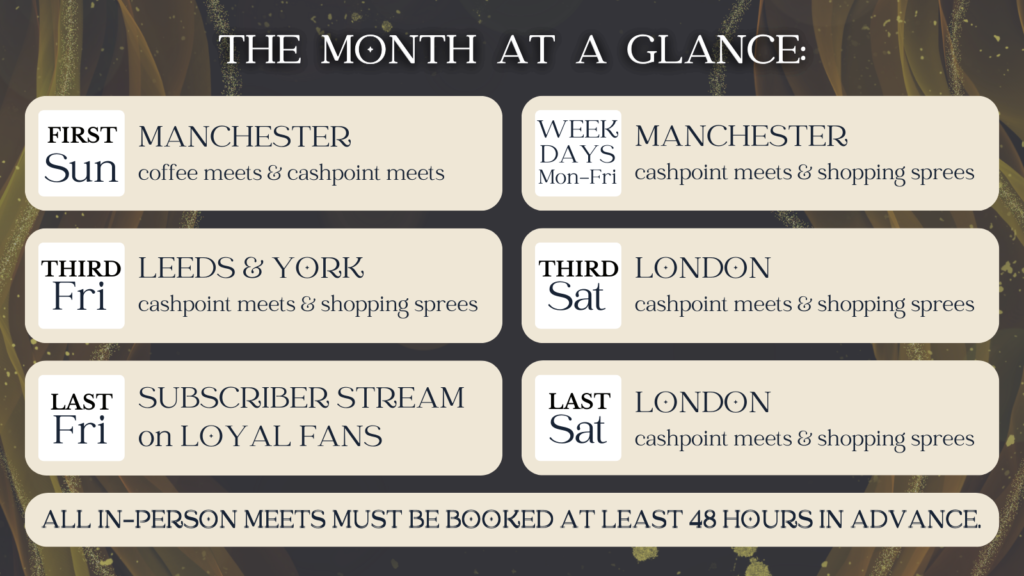 | Monday | Tuesday | Wednesday | Thursday | Friday | Saturday | Sunday |